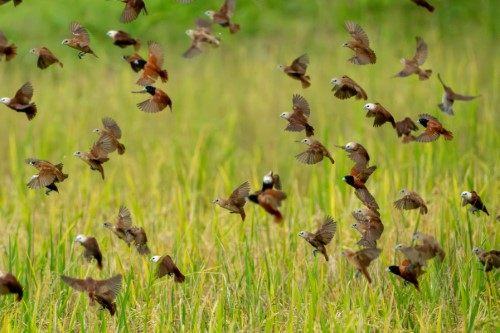 Title: Hundreds of Munia flying